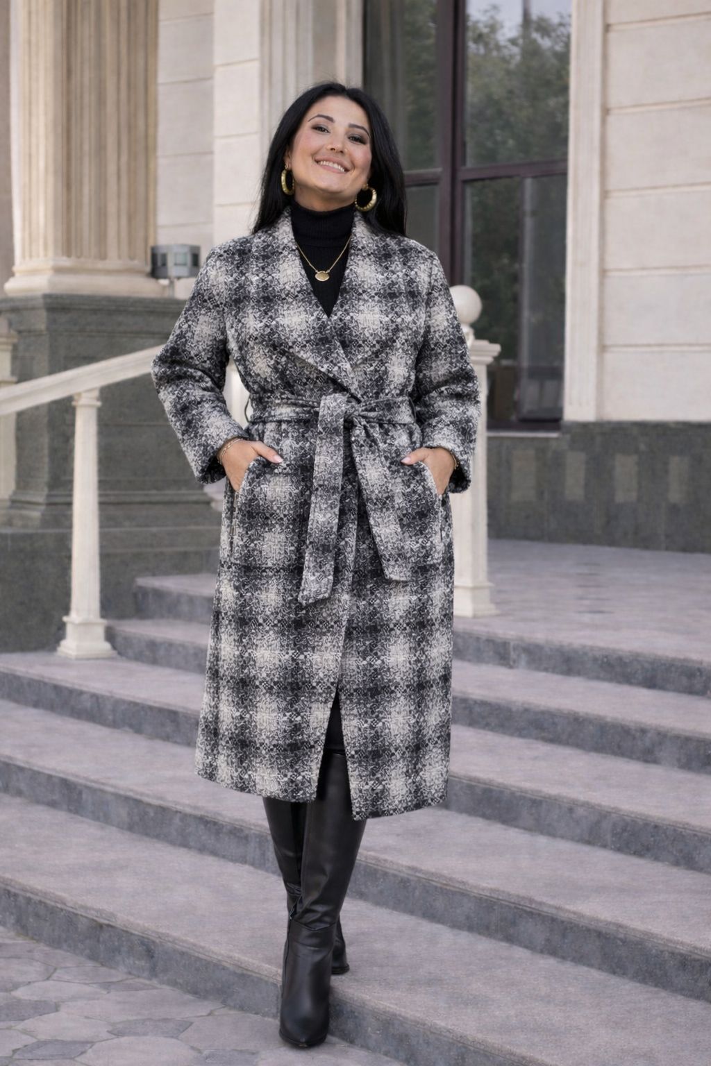 Палто с апликирани джобове. Това е дрехата, която ще те открои и не бива да липсва от гардероба ти. Материята придава интересна визия, а кройката подхожда на всеки тип фигура.