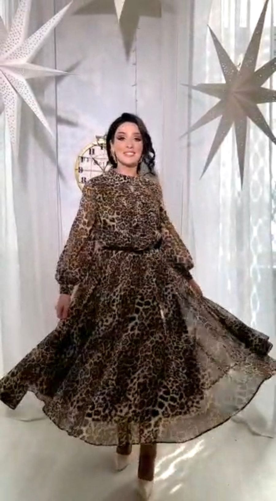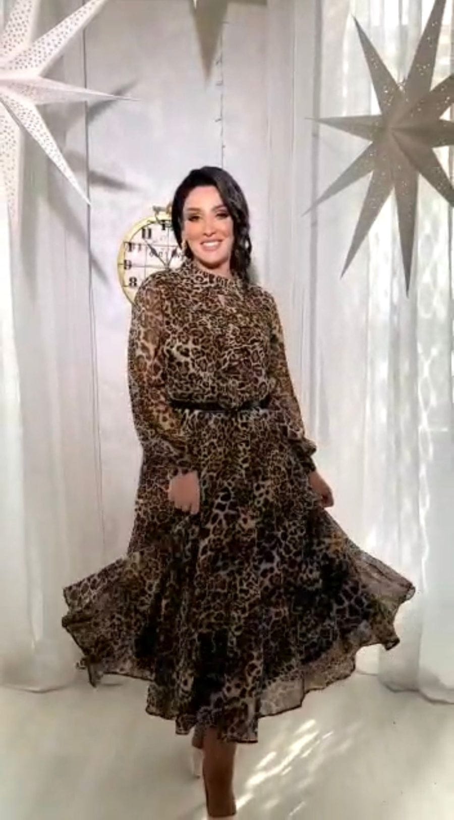 Ефирна рокля с волани, дълъг широк ръкав с леопардов принт. Перфектна за всяко събитие, както и за офис визия.