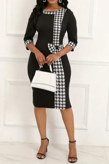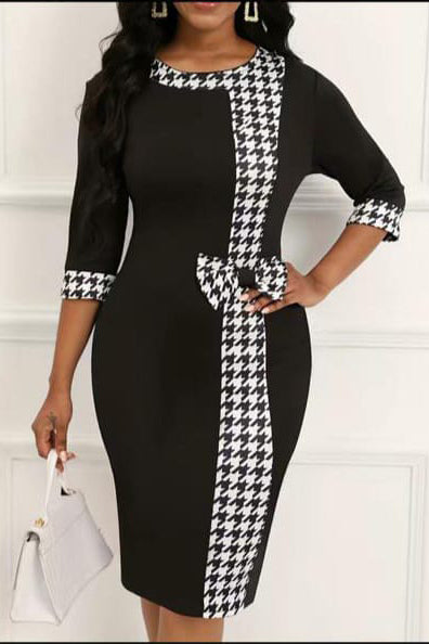 Елегантна рокля от креп с контрастни принтирани вложки и панделка, която подчертава талията. Идеална за всякакъв тип събитие! Подходяща за всяка фигура.