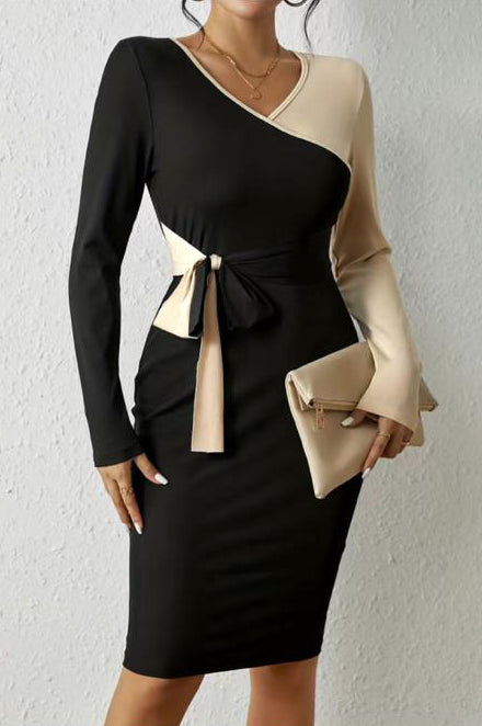 Елегантна рокля от креп, с кръстосан дизайн в две цвята. Перфектна е както за офис, така и за излизания в града. Подходяща за всяка фигура.