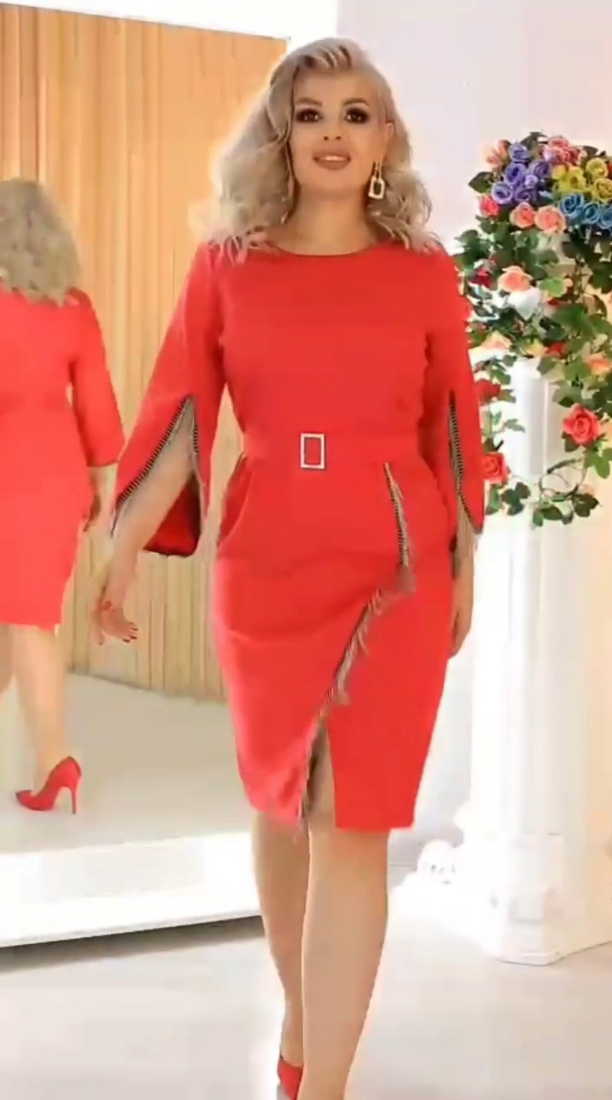 Официална рокля, тип bodycon, с разцепен ръкав и контрастни ресни. Талията е подчертана с колан и подхожда на всяка фигура. Перфектна е за всяко събитие, както и за офис визия.
