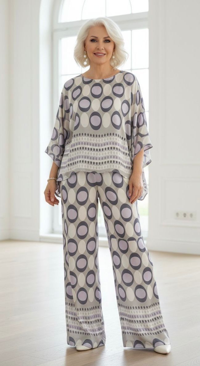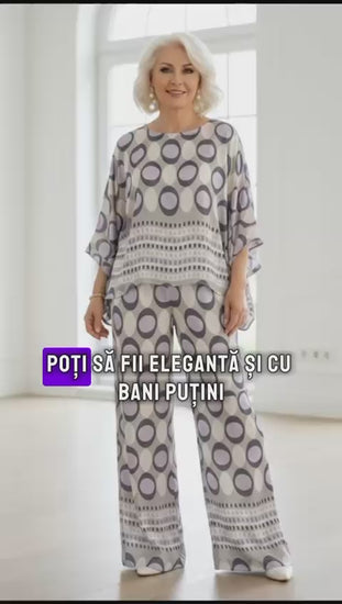 Елегантен комплект с принт, с лек панталон и елегантна свободна блуза – перфектен за специалните събития в твоя живот. Новата колекция не участва в промоционалната кампания!