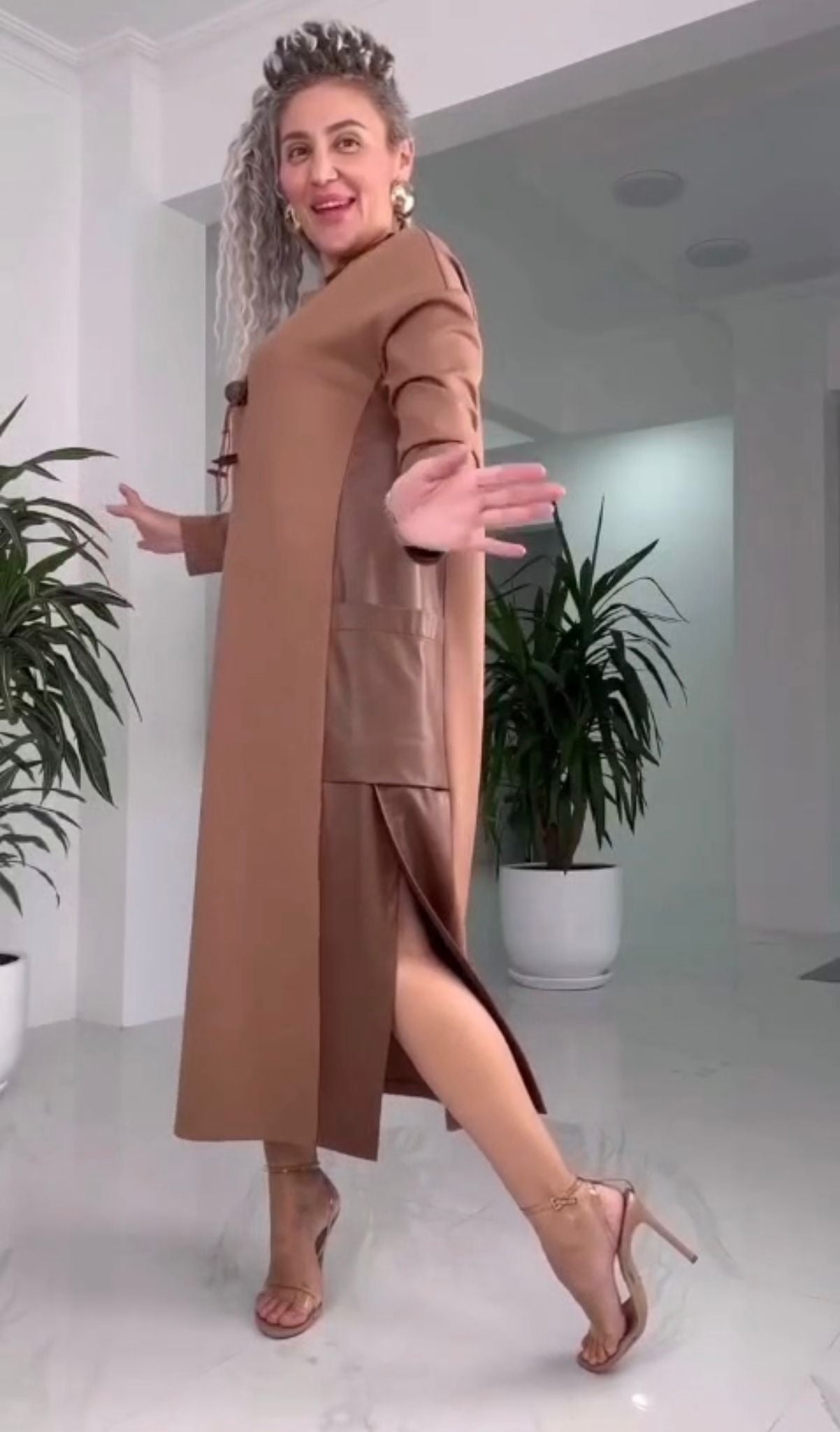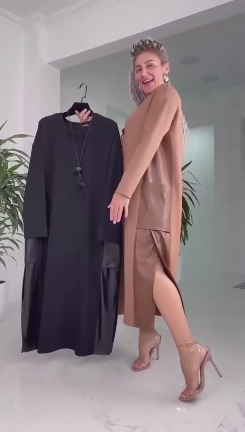 Ежедневна рокля със странични джобове и вложка от екологична кожа. Перфектна рокля за дневен или офис тоалет! Аксесоарът не е включен!